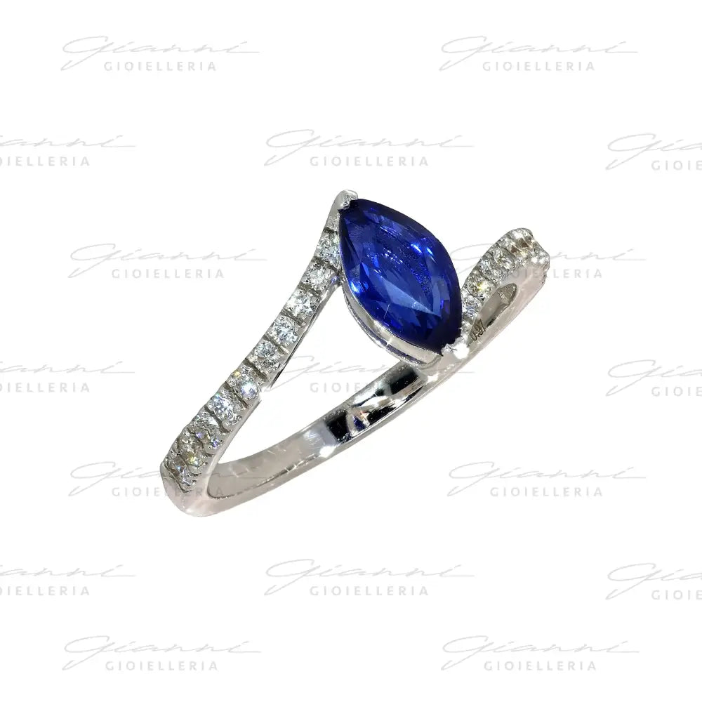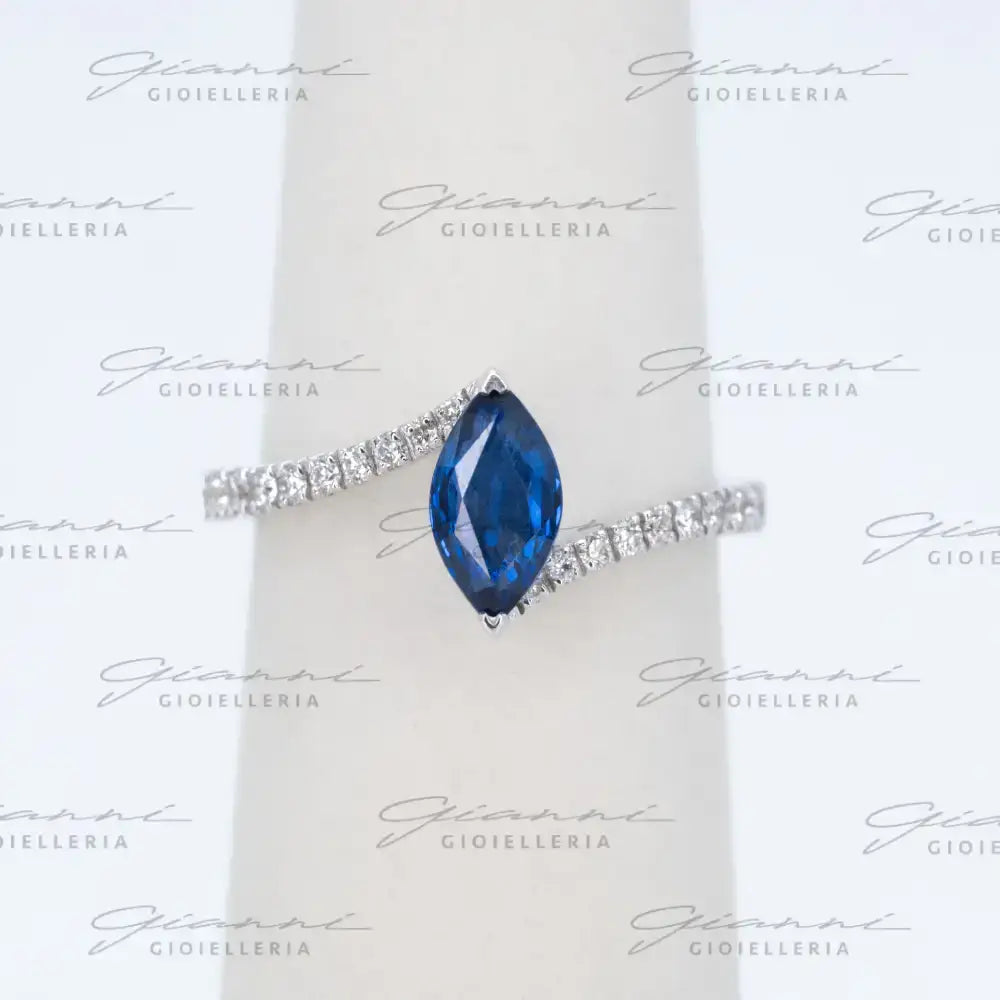 Anello Crivelli - Zaffiro taglio Navette in Oro Bianco con Diamanti Anelli