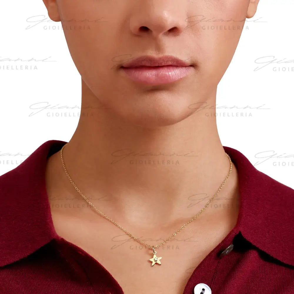 Ciondolo stellina in oro giallo 9K con 1 diamante bianco (ct 0,03).