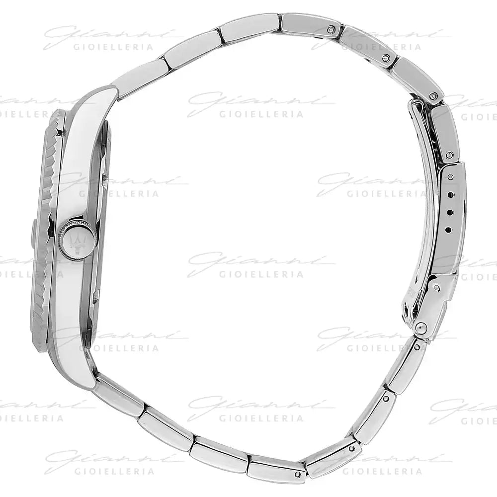 Genere: Uomo, Materiale e finitura cassa: Acciaio, Misura cassa: 43mm, Spessore cassa: 11,20, Finitura cassa: Satinato, Colore cassa: Silver, Vetro: Vetro minerale, Materiale cinturino: Metallo, Colore cinturino: Silver, Chiusura: Fibbia diver con blocco sicurezza, Movimento: Quarzo, Water resistant: 10 atm.