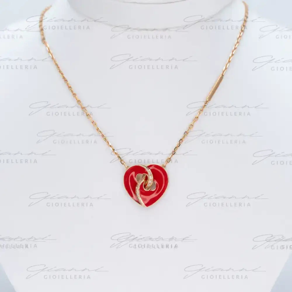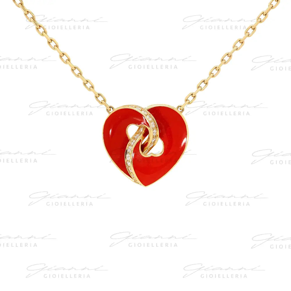 Girocollo Crivelli - Cuore Smaltato in Oro giallo con Diamanti