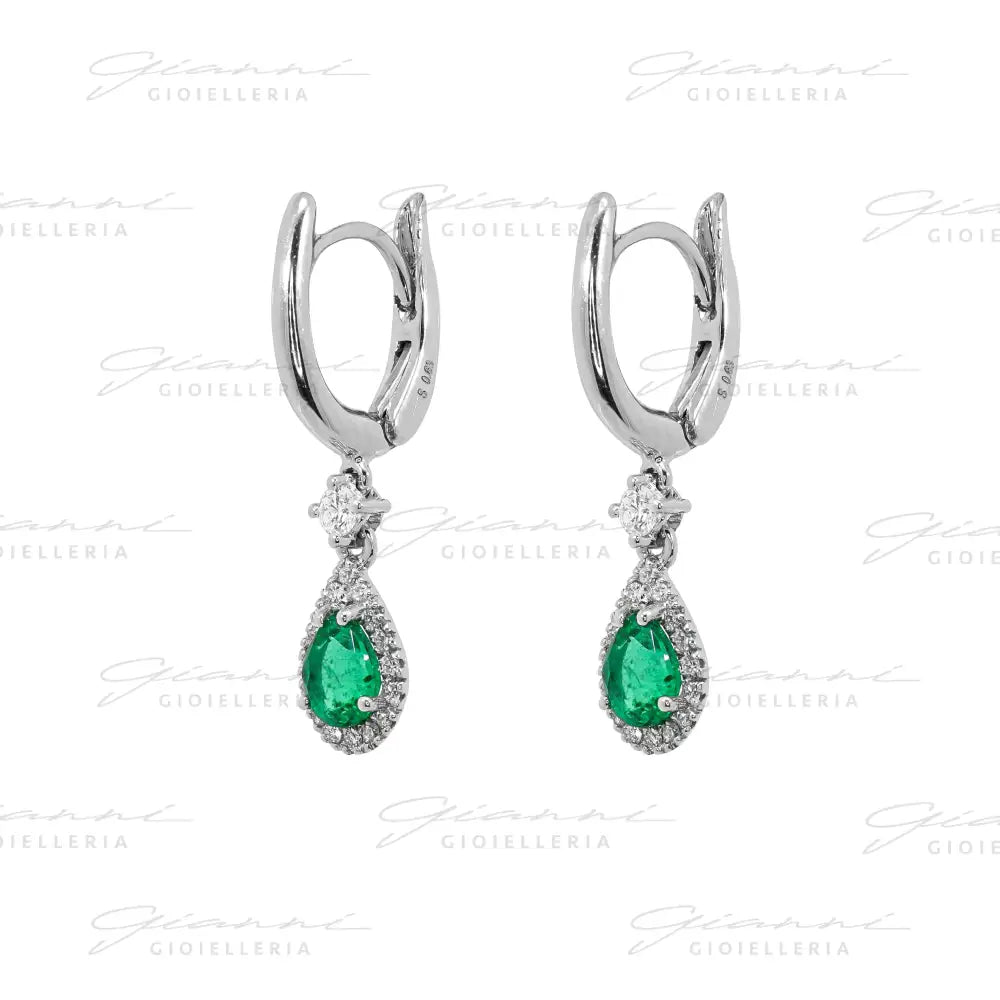 Orecchini Crivelli - Pendenti con Smeraldo e Diamanti in Oro Bianco Orecchini