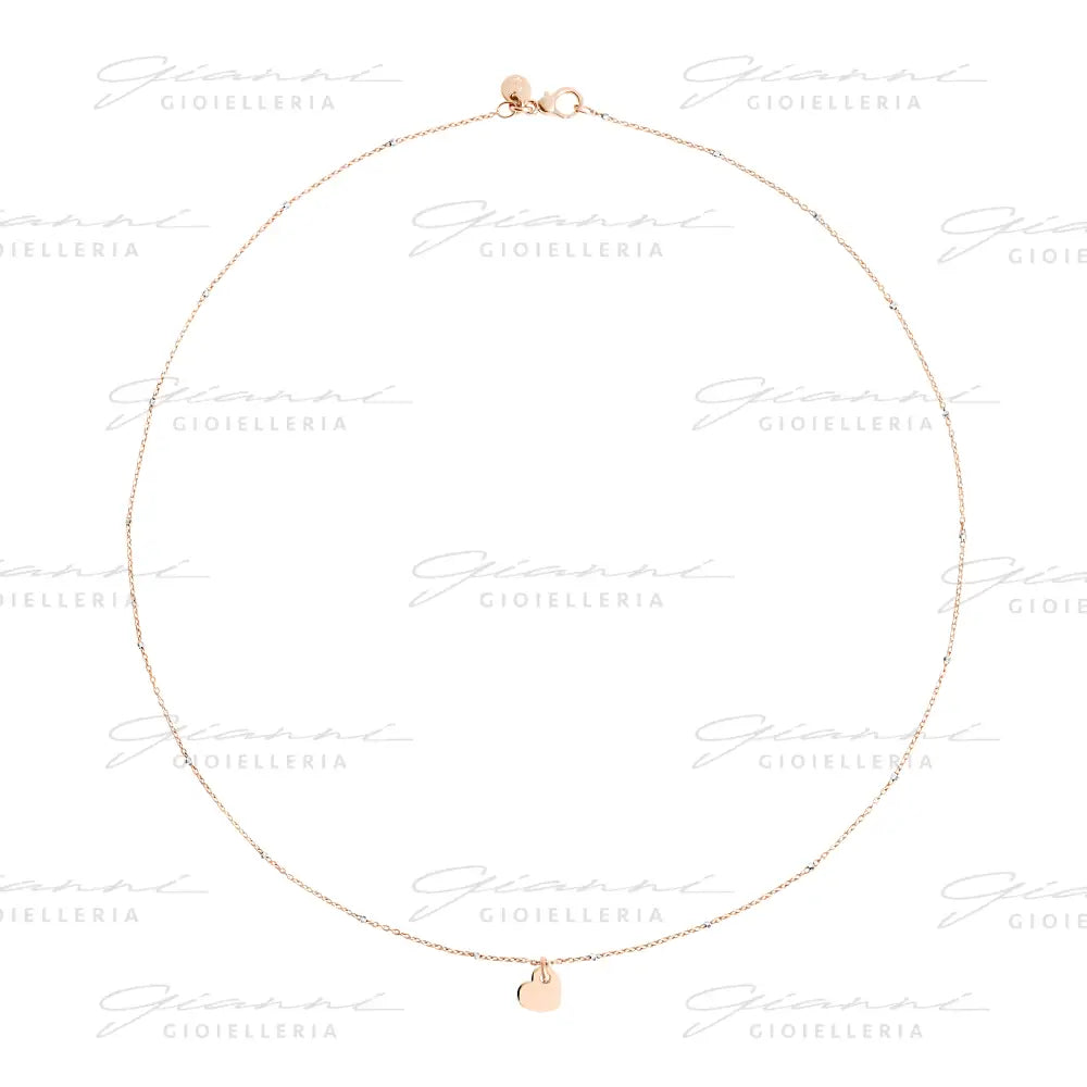 Collana in oro rosa 9K e oro bianco 9K rodiato con charm cuore modello mini in oro rosa 9K. Piastrina in oro rosa 9K.