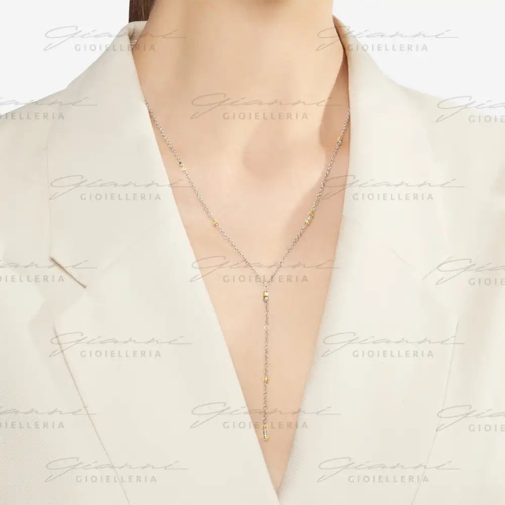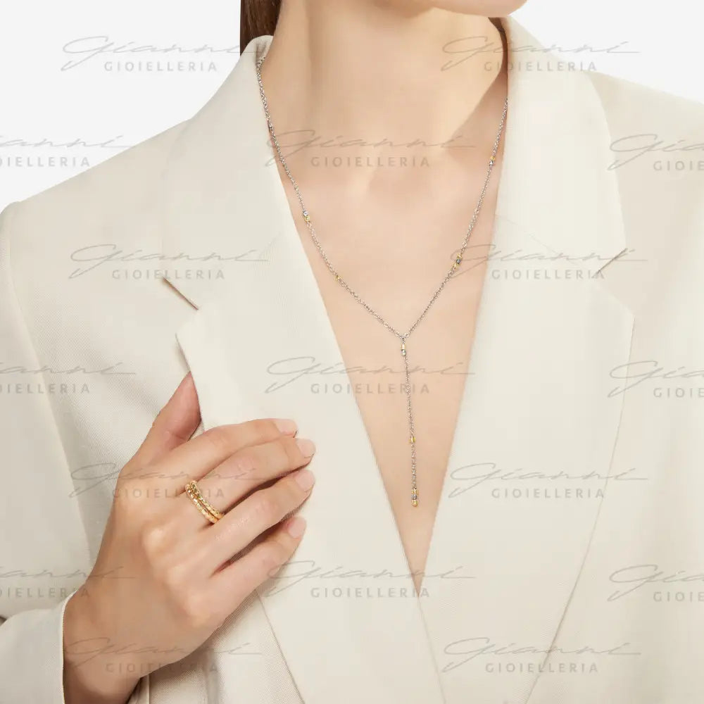Mini Granelli lariat necklace in 925 silver and 18K yellow gold.