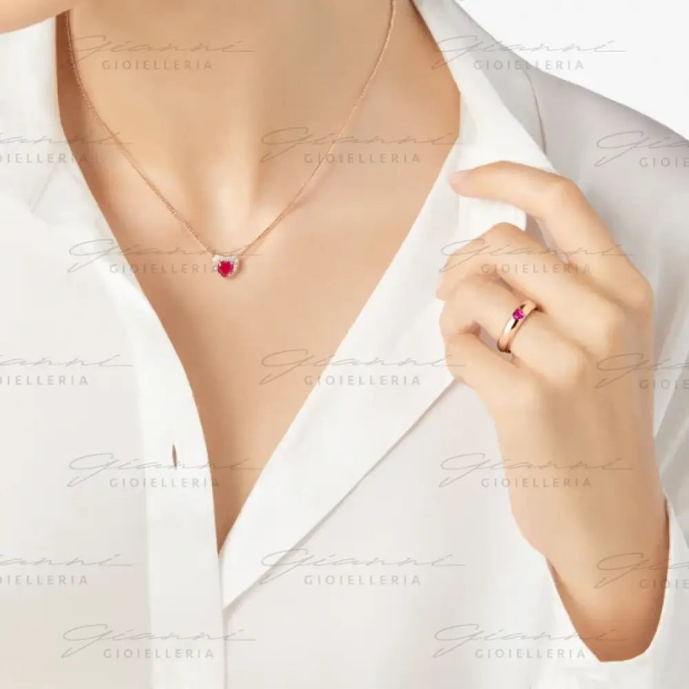 Anello Cuore in oro rosa 9K con 1 rubino sintetico (ct 0.23).
