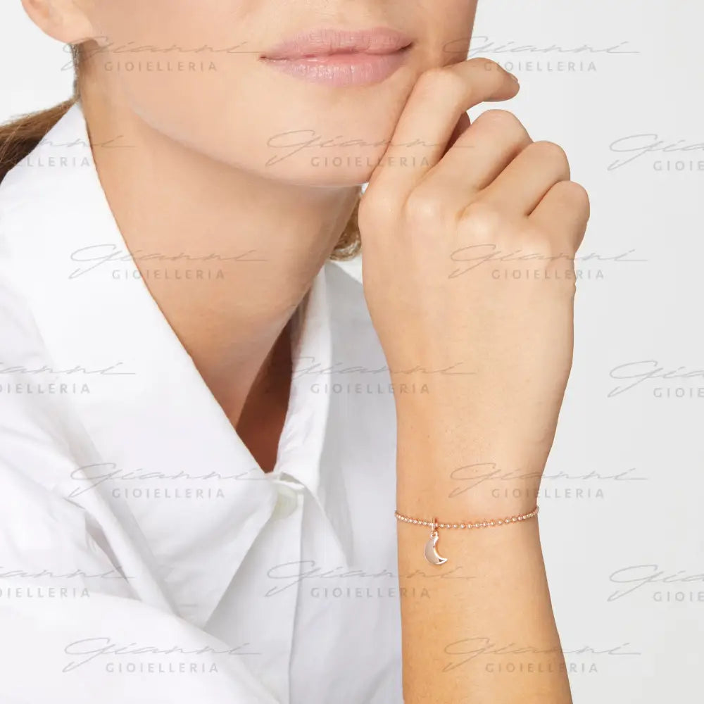 9K Rose Gold Moon Pendant - Small Model. Black Cord Included.