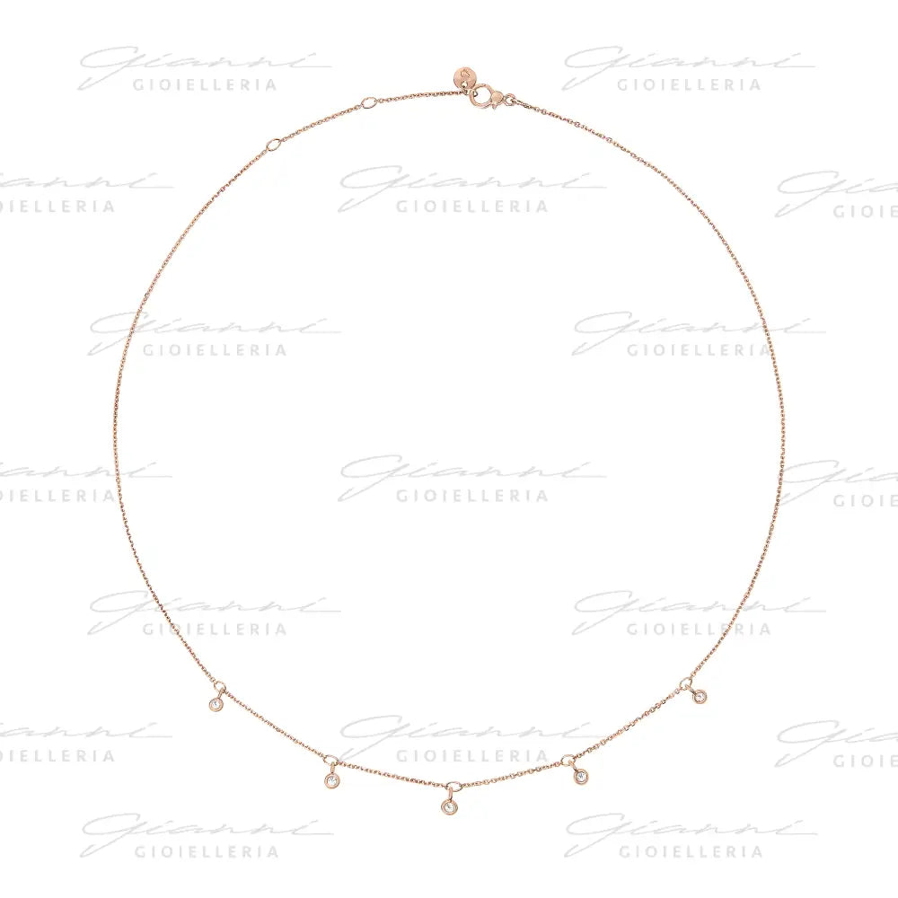 Collana Essentials in oro rosa 9K con 5 diamanti bianchi (ct 0.17).