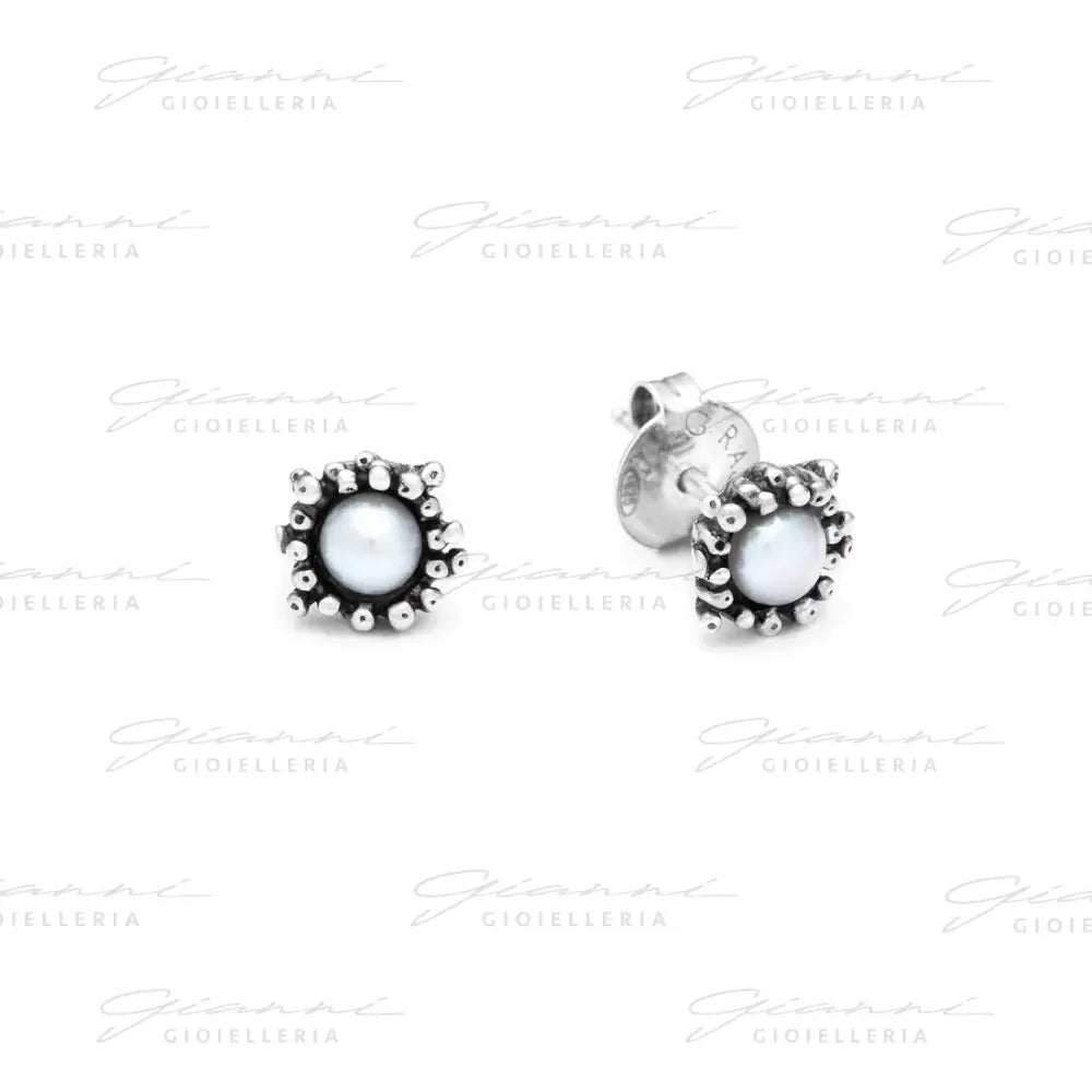 Un piccolo grande gioiello da indossare ogni giorno. Sono gli orecchini Anemone Mini, in argento brunito con il decoro che incastona, ognuno, una piccola perla di fiume. Per chi ama il minimalismo senza voler rinunciare ad una elegante bellezza.