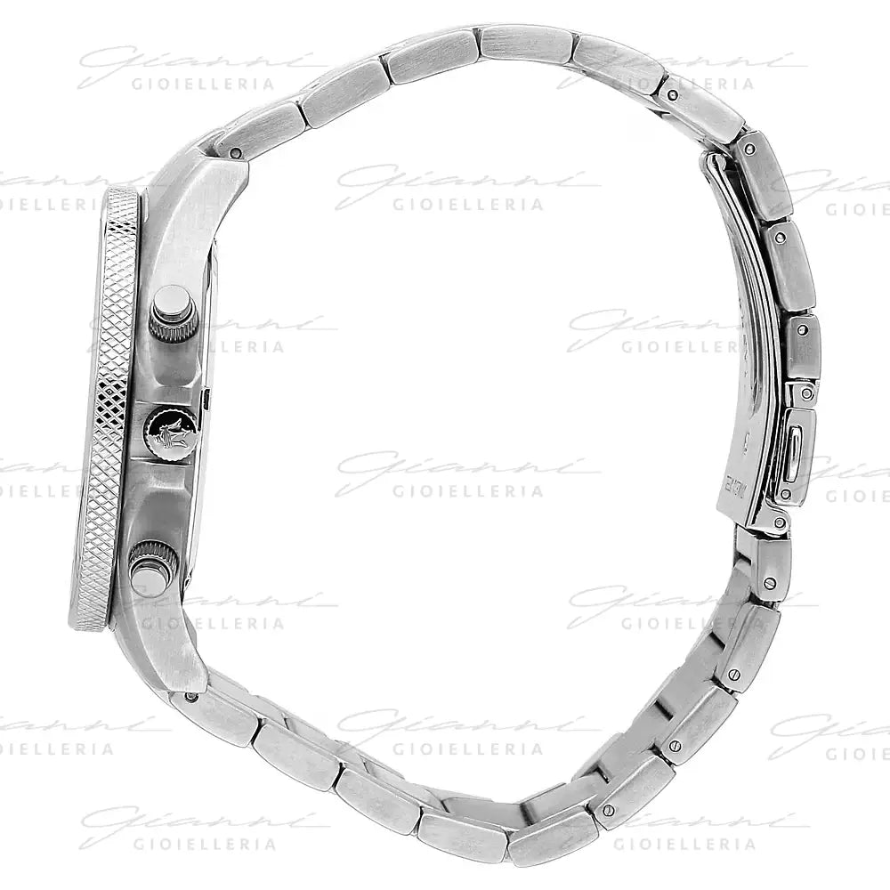 enere: Uomo, Materiale e finitura cassa: Acciaio, Misura cassa: 44mm, Spessore cassa: 11.4, Finitura cassa: Satinato, Colore cassa: Nero, Vetro: Vetro minerale, Materiale cinturino: Metallo, Colore cinturino: Silver, Chiusura: Fibbia deplojante con pulsanti, Movimento: Quarzo, Water resistant: 10 atm.