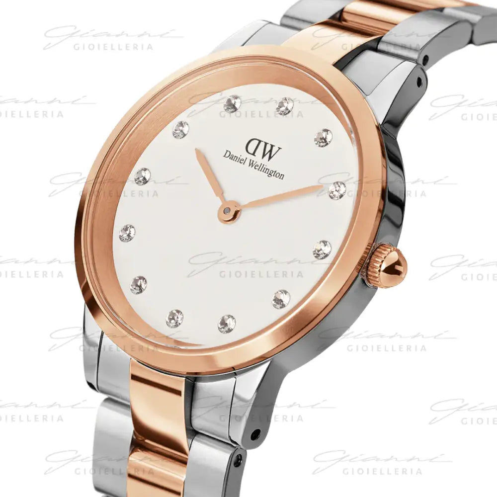 Questo design esclusivo conferisce al nostro caratteristico quadrante a dodici indici una silhouette rinnovata e luminosa. Per ottenere l'aspetto bicolore, Lumine è disponibile in acciaio inossidabile lucido con una vivace finitura argento con elementi a contrasto del bracciale e della cassa placcati in raffinato oro rosa.
