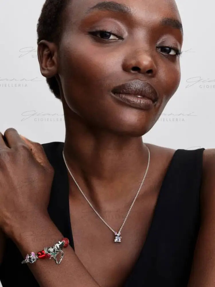 Se il caos è il tuo linguaggio d’amore, il nuovo charm di Stitch fa per te. Questo charm in Argento Sterling 925 rappresenta Stitch con una rosa rossa in vetro di Murano, ed esprime alla perfezione il suo spirito tenero e al tempo stesso birichino.