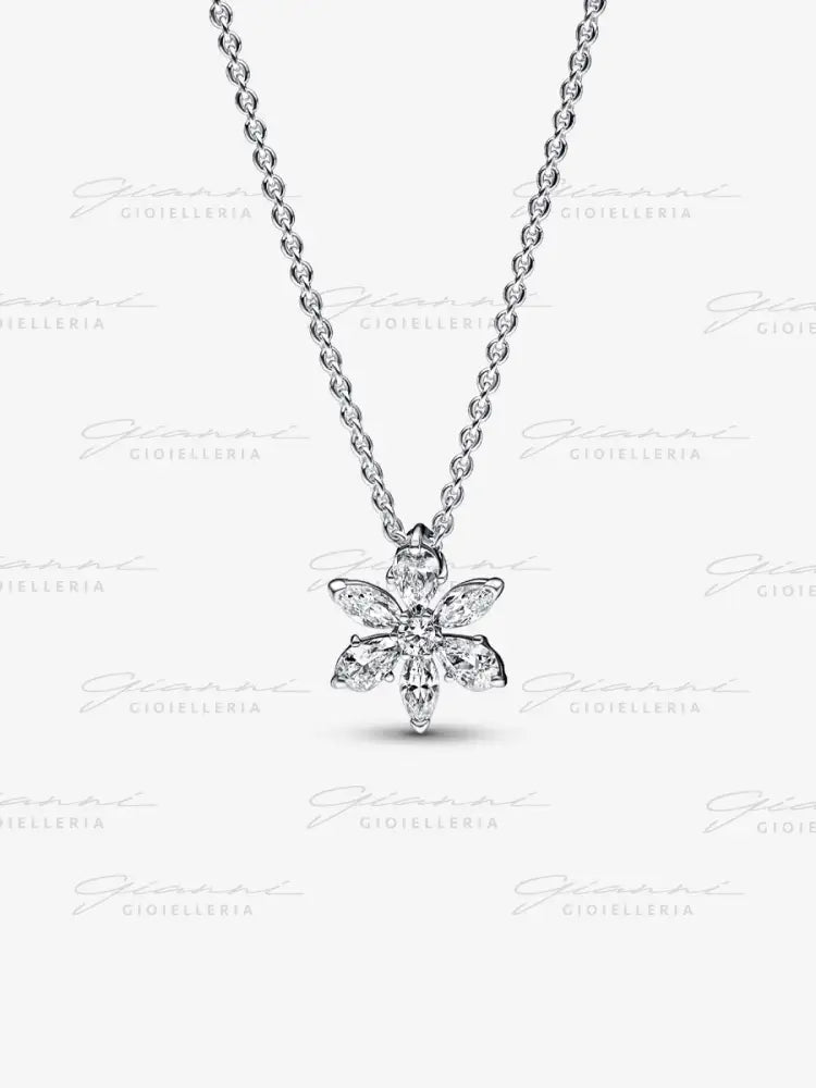 Porta con te la bellezza della natura con questa collana Pendente Herbarium Fiore Luminoso. La collana in Argento Sterling 925 presenta una composizione di pietre a goccia e a marquise che si alternano attorno a una pietra centrale rotonda, dando vita a una forma ispirata ai petali e alle foglie. La collana, che reinterpreta in modo elegante le forme che si trovano in natura, è perfetta per donare un tocco delicato ai tuoi look.
