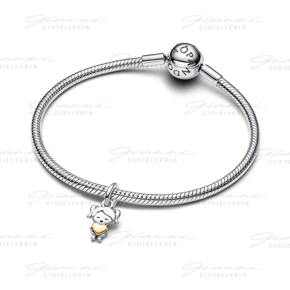 Esprimi l'amore per la tua bambina con il Charm Pendente Bimba Felice. Realizzato in Argento Sterling 925 con un cuore placcato in Oro 14k, è il simbolo perfetto del legame che vi unisce.