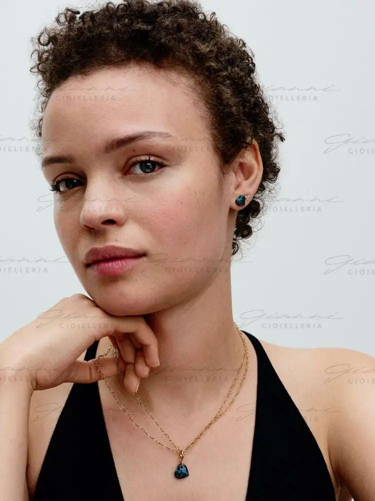 Porta con te tutto il fascino della natura con il Charm Pendente Cuore Opale Verde e Blu. Un opale iridescente creato in laboratorio a forma di cuore presenta uno spettro di colori e striature di glitter che evocano i colori vivaci della giungla tropicale. Il cuore pende inclinato da un anello di congiunzione con placcatura Oro 14k e da un anello passante a forma di goccia. Abbina questo vivace charm ad altri gioielli ispirati alla natura per celebrare lo spirito avventuroso della giungla e catturare l'essenza dell'estate.
