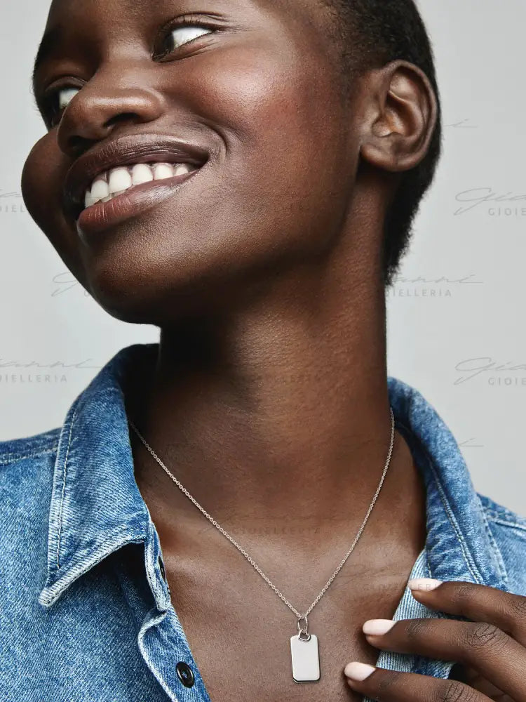 Celebra ciò che ti rende unica e lascia che i tuoi gioielli esprimano le passioni, i legami e i ricordi più vicini al tuo cuore: questo pendente rettangolare in Argento Sterling 925 può essere personalizzato aggiungendo un messaggio o un simbolo che lo rendano davvero tuo. Indossalo da solo sulla tua collana per renderlo protagonista del tuo look o abbinalo ad altre collane con lunghezze e stili diversi per creare una composizione personalizzata.