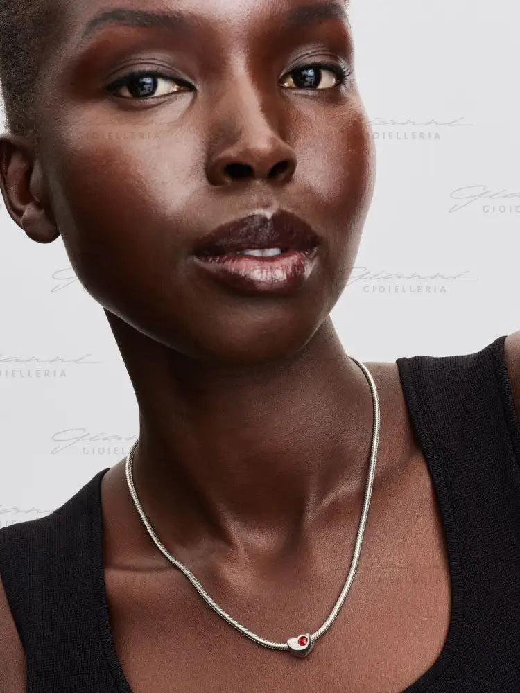 Charm Pandora- Cuore con Pietra Rossa Scuro Gennaio da incidere