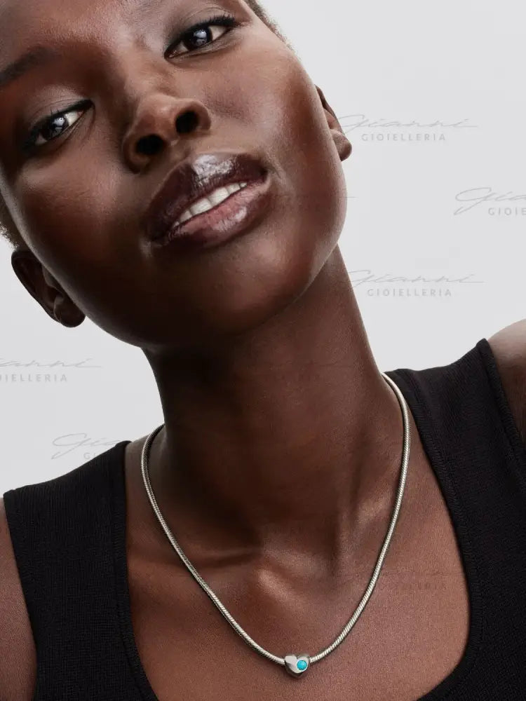 Incidi un messaggio d'amore. Il nuovo charm a cuore in Argento Sterling 925 con pietra ispirata al turchese incastonata a filo è perfetto per incidere un messaggio personale o un ricordo ricco di significato.