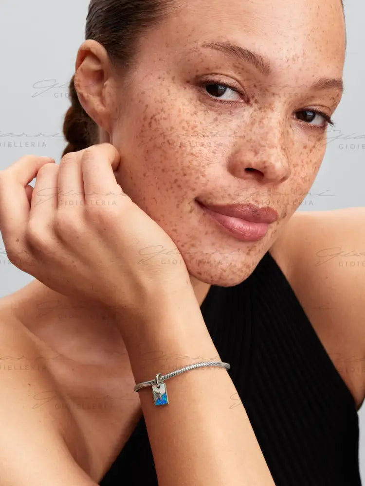 Esplora il mondo con un simbolo di libertà e avventura. Questo charm a tema viaggio è pensato per ispirare il tuo viaggio, con una combinazione unica di opale sintetico bianco e blu.