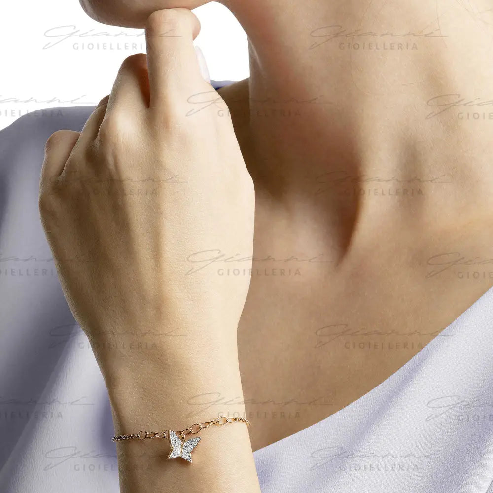 Indossa i bracciali Remix che hanno fatto innamorare milioni di persone. Realizzato in un Esclusiva lega metallica, il gioiello è all’apparenza un semplice bracciale completato da una deliziosa farfalla cosparsa da Cristalli Swarovski colorazione Crystal Clear, ma che nasconde una chiusura magnetica che permette di creare composizioni uniche assemblando, tramite essa, altri bracciali Remix. da qui potrai creare Girocolli, Collane o Bracciali a doppio giro!