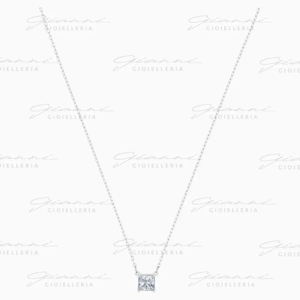 Fondi eleganza e semplicità con la collana Attract. Realizzato in un Esclusiva lega metallica e rifinita a mano, il gioiello presenta una elegante catenina rodiata e completata da un Cristallo Swarovski colorazione Crystal Clear che donerà luce unica al tuo Outfit.